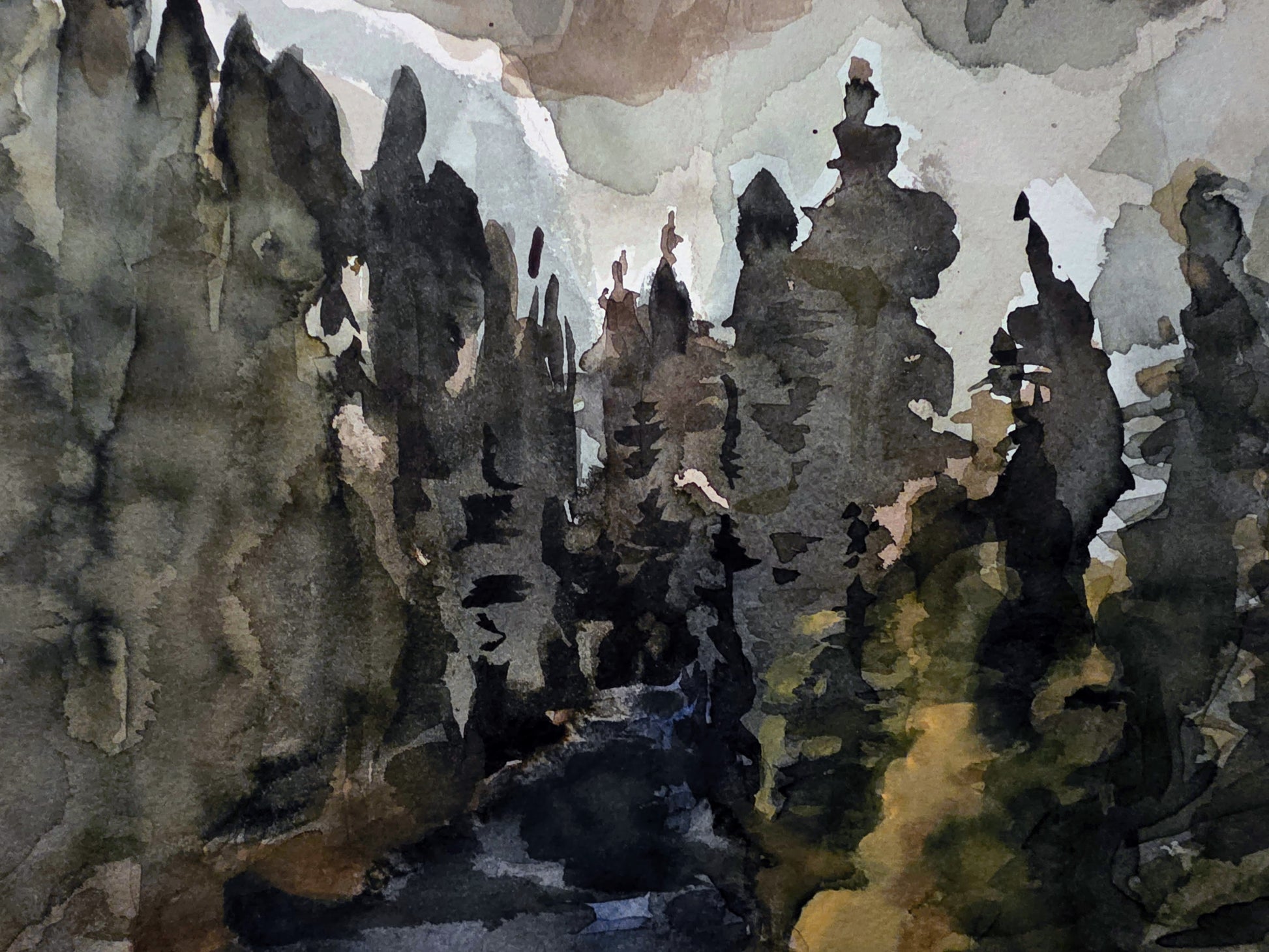 Created on luxurious Arches Watercolor Sheet, Natural White, 22" x 30", Cold Press, 90 lb (185 gsm)
